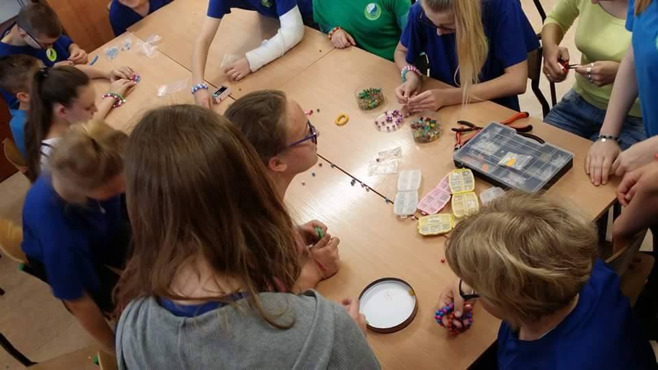 Jakiś czas temu miałam przyjemność być zaproszoną do szkoły w moim mieście aby pokazać dzieciakom troszkę koralikowania. Niestety były to tylko dwie godziny lekcyjne i ledwo się wyrobiliśmy ze wszystkim ale się udało. Dzieciaki były świetne. Z zapałem i ochotą robiły bransoletki no i wogóle było super. Oby więcej takich spotkań. Dziękuję bardzo za zaproszenie i do miłego zobaczenia ponownie. Dodam pare fotek które były cyknięte podczas zajęć i link do profilu szkoły gdzie znajduje się artykuł.